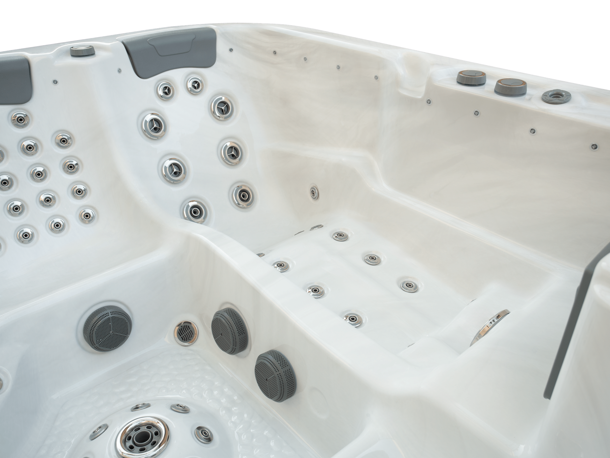Hvert sete er designet for å levere en spesifikk massasje inkludert levering av mykt eller dypt vevstrykk for optimal behandling, som et ekstra sett med hender for å massere og slappe av nakken, skuldrene, beroligende overarbeidede muskler og løsne alle de små knutene av spenning, stress og spenning smelter bort. Dysene kommer i forskjellige størrelser med forskjellige funksjoner. I tillegg er hvert boblebad utstyrt med både undervannslys og overvannslys med muligheten til å velge mellom 7 forskjellige fargevalg. Vannfall, vannstråler og aromaterapi er også gode funksjoner som gjør spaopplevelsen mer behagelig og luksuriøs.