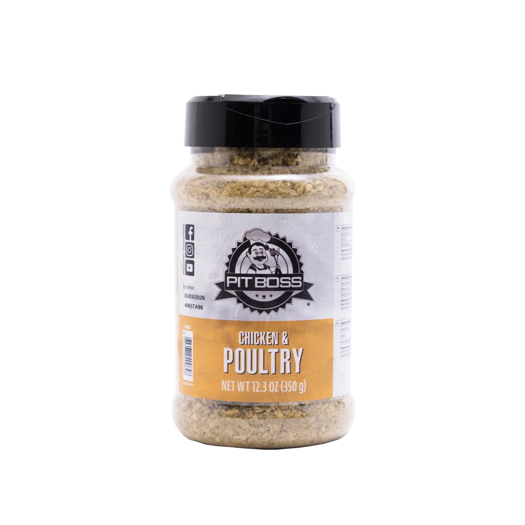 Når det gjelder fjærkre, er Pit Boss® Chicken & Poultry Rub uimotståelig. Vår prisvinnende krydderblanding, kombinert med løk og hvitløk, gir en perfekt utfyllende smak til kylling, kalkun og andre fjærkre-retter. Denne allsidige krydderblandingen passer også utmerket til grønnsaker eller egg.